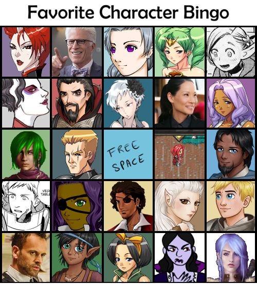 A couple days ago I got reminded of those Favorite Character Bingos, and it turns out I haven't done one since 2022 (before I started Umineko), so I decided to update mine!